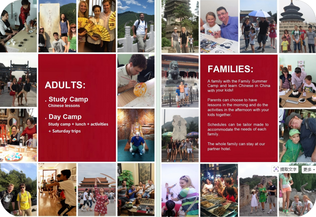 Students can visit the Forbidden City,climb the Great Wall, shop at the Hutongs and enjoy the view of the Summer Palace!